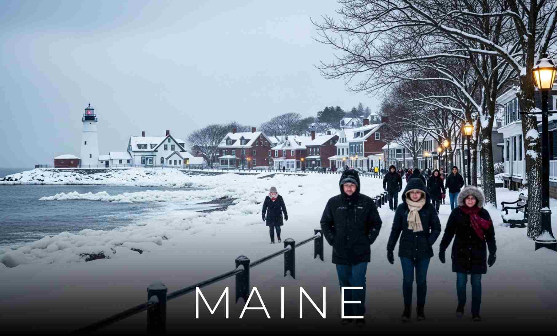 The geographical position of Maine on the northeastern side of the US provides it with a cold snowy winter. Even though coastal regions are somewhat milder, inland regions tend to become very cold.