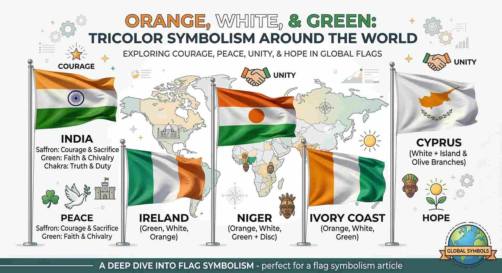 Flags are powerful icons; they shape the identity, history, values, and struggle of a nation. One of the world’s most widely used tricolors is represented by the orange, white, and green flag. This set of colors also evokes unity, freedom, and cultural pride at first glance. This flag is often associated with India, Niger, the Ivory Coast, and Cyprus, in addition to those of other nations. The orange-white-green tricolor effectively extends more broadly than a single country.