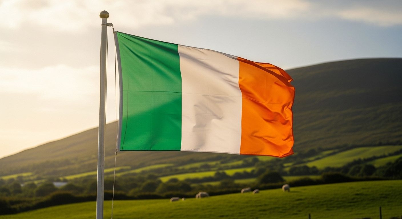 The most recognizable flag is the Irish tricolor, which consists of orange, white, and green. It is composed of three equal vertical bands: orange on the fly side, white in the center, and green on the hoist side.